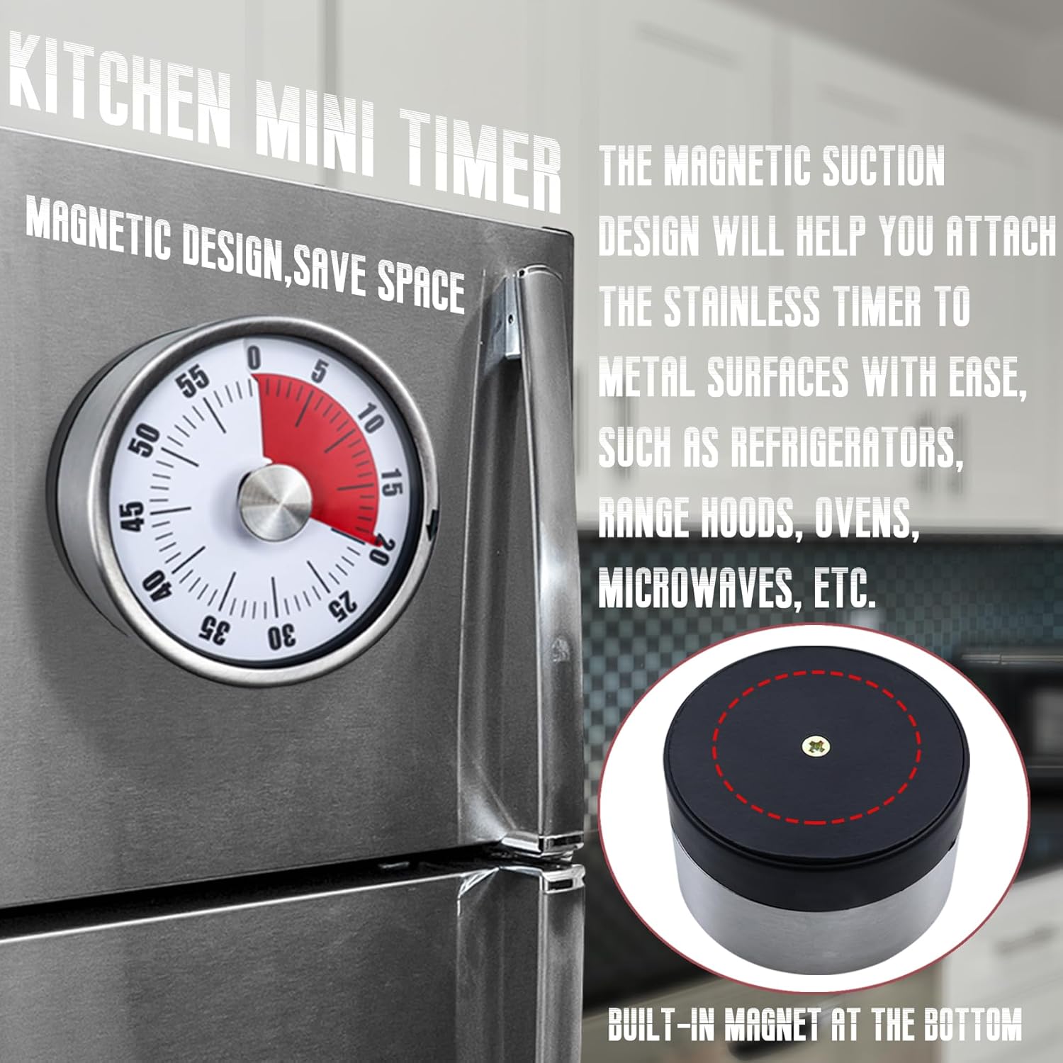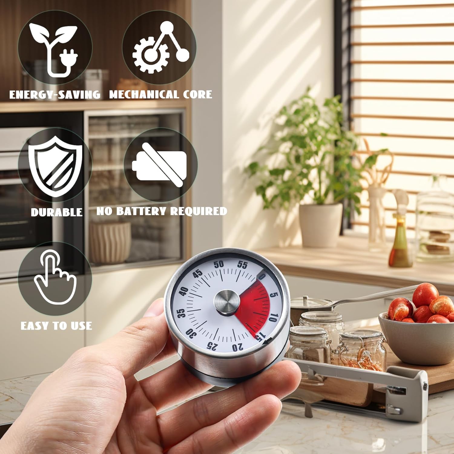 Magnetic Mechanical Kitchen Timer – Stainless Steel, Visual & Battery-Free for Perfect Cooking Every Time